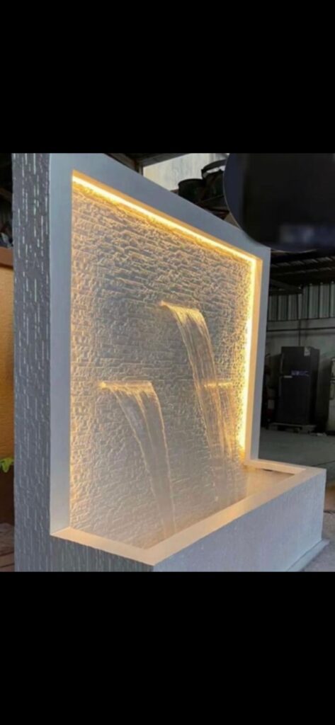 تناسب التصاميم الحديثة للمنازل والفنادق، حيث يتدفق الماء على زجاج شفاف بإضاءة خافتة تضيف سحرًا خاصًا للمكان.